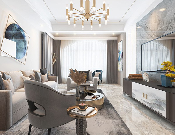 锦绣城雅园136平方三室两厅现代轻奢风格装修效果图